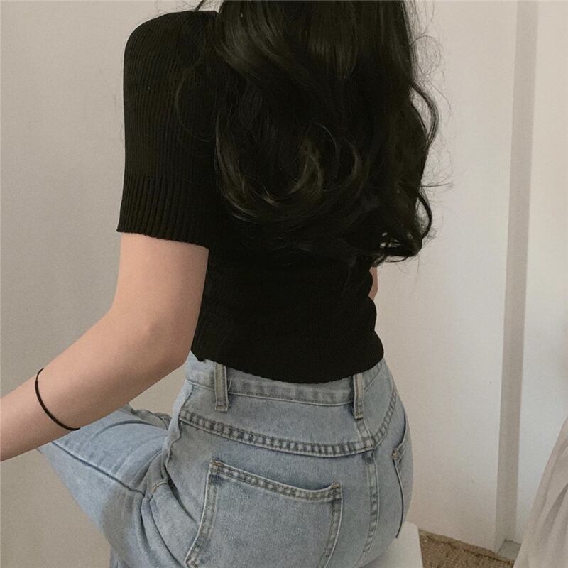 サマーVネックスタンダードセーター レディーストップス レトロ 夏物 韓国婦人67721102700