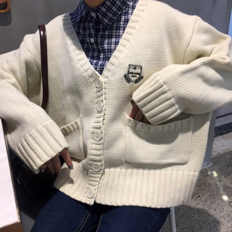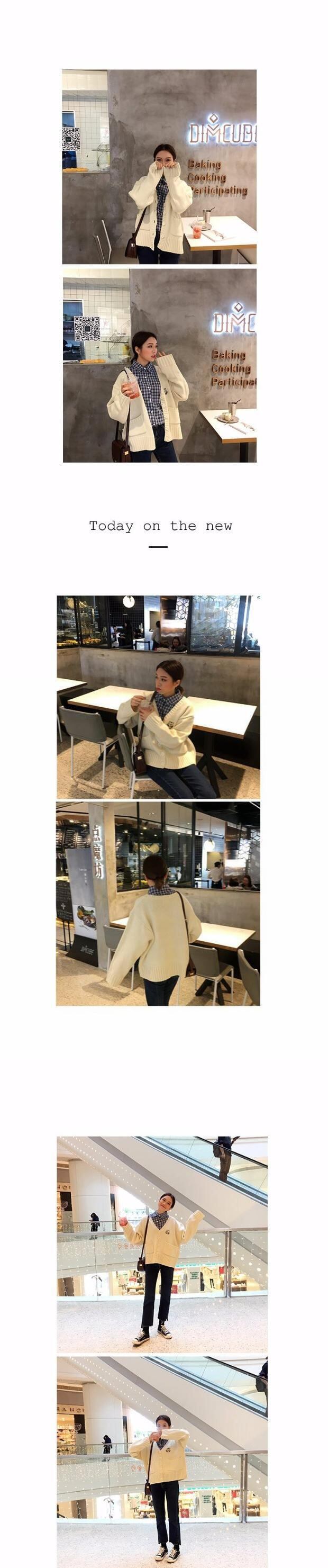 ルーズVネックスタイルセーター カーディガンレッドジャケット 韓国婦人40024966658