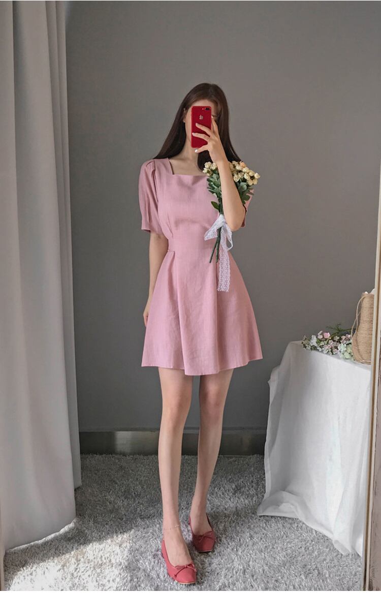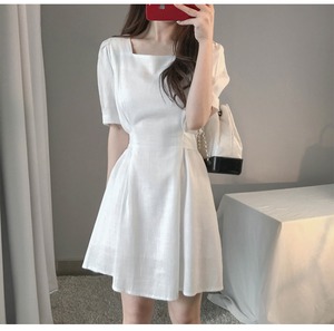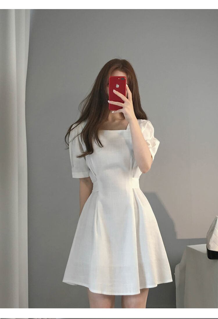 夏の小さなドレスの女性のかわいいフランスのレトロなウエストの薄いスカートのレースの四角いネックラインのスカート 韓国婦人60475355254