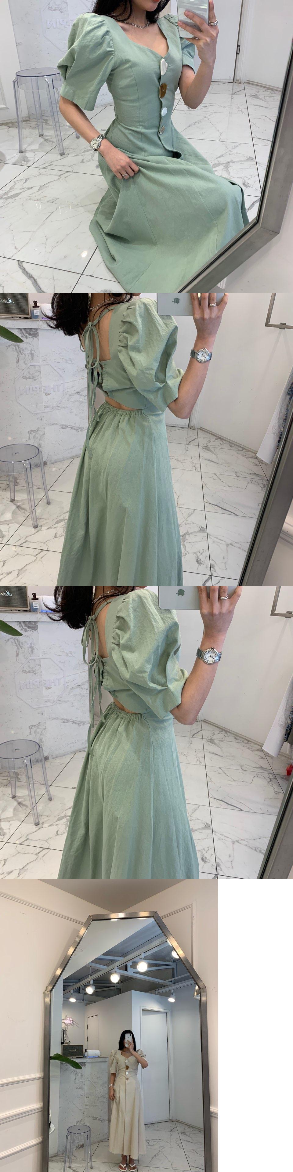 南東大門ロングドレスオープンウエストとバックレースの気質、ウエストと薄い宮殿パフスリーブvネックドレスの女性 韓国婦人91212033519