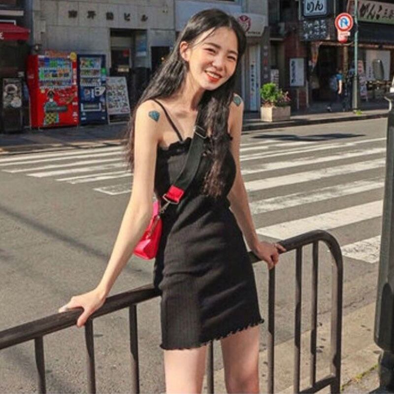 スタンダードスタイルダークブラックニットスリムドレス スカート レトロ 韓国婦人54707195414