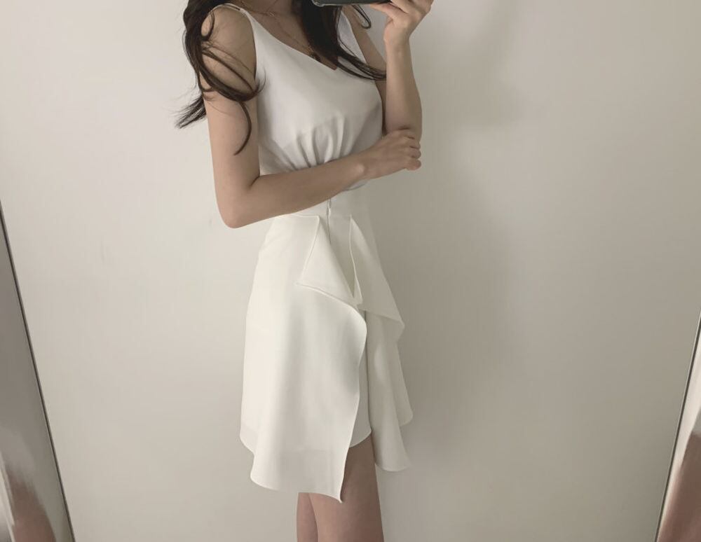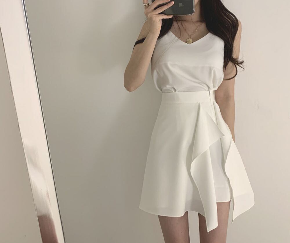 ins夏ワイルドVネック慎重なマシンベストサスペンダー+ハイウエスト不規則Aラインスカートスカートスーツ 韓国婦人12308093150