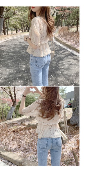 ウェストフローラルシフォンサマー ブラウス 夏物 花柄 韓国婦人7886042256
