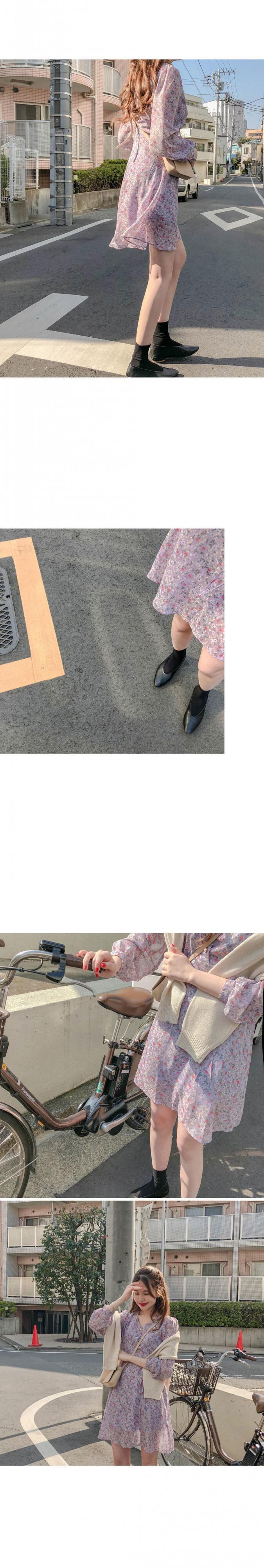 スカート ショートスタンダードフローラル長袖スリーブウェストシフォンドレス サマー ロング レトロ 大人ガーリー スウィート キュート カジュアル 夏物 花柄 パープル 韓国婦人66042677651