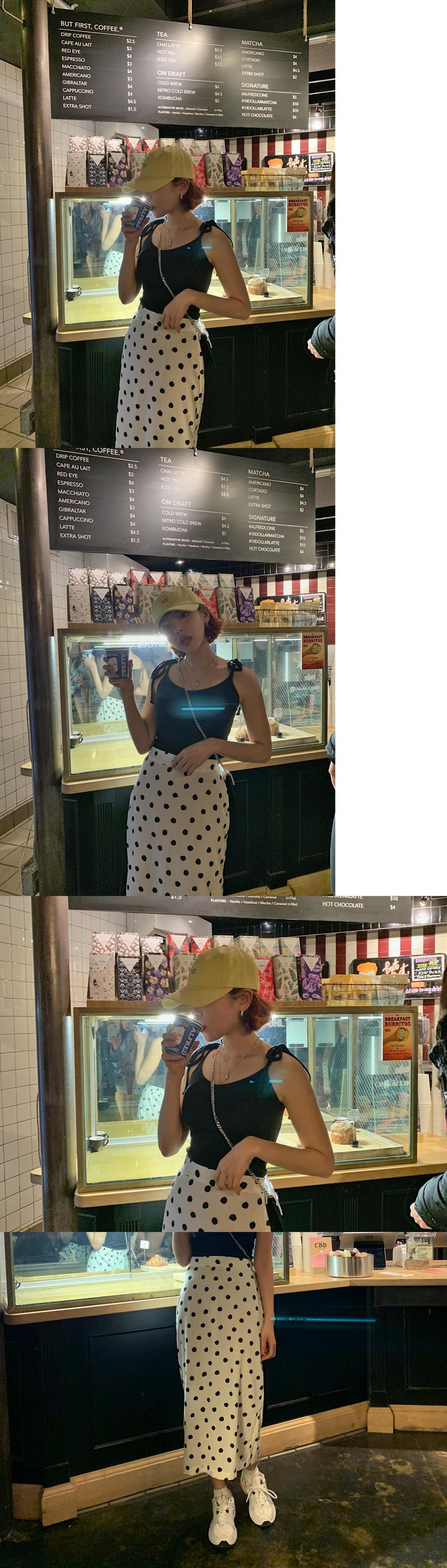 水玉Aライン薄手バック スカート 韓国婦人76504646713