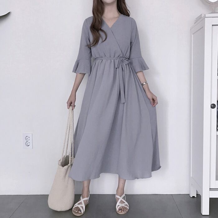 シックな優しい風の蓮の葉の袖甘いシフォンドレス初恋妖精ニッチオーバーニーaラインスカート 韓国婦人71061882626