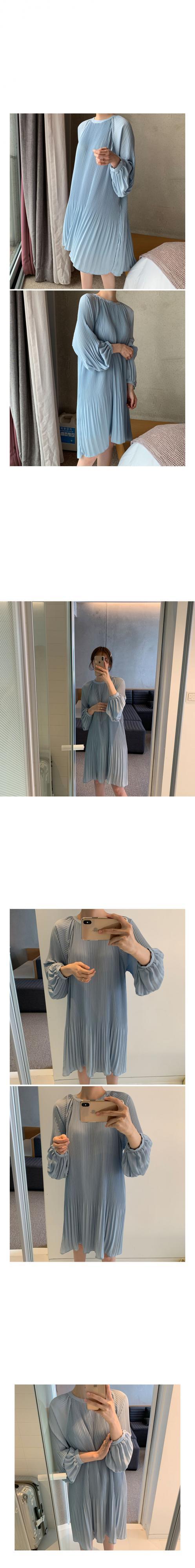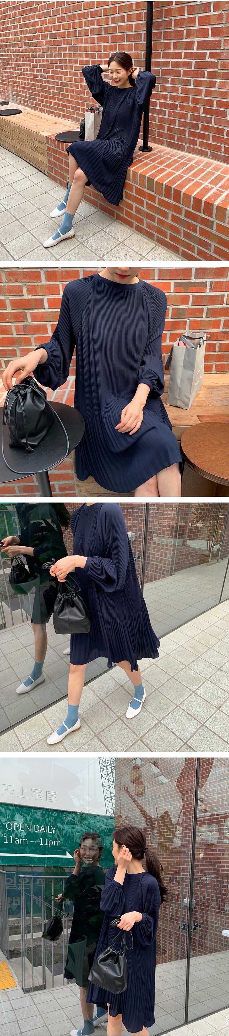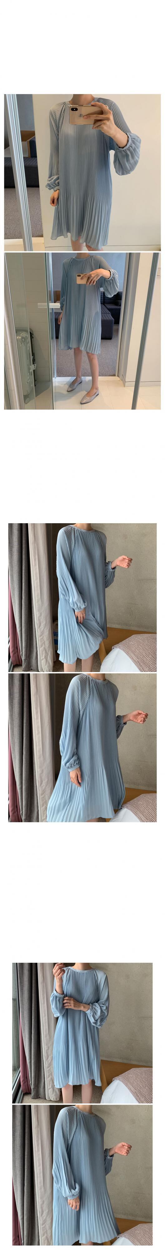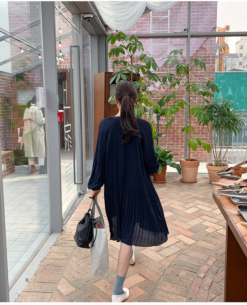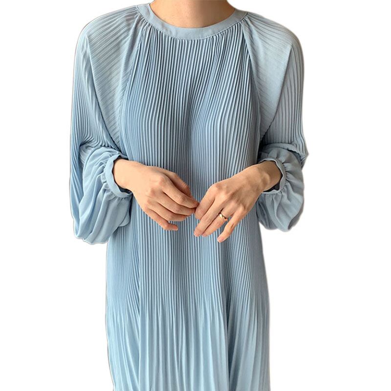 ラウンドネックソリッド カラールーズシフォンプリーツスカート ドレス ロング エレガント Oネック ソリッドカラー 韓国婦人81159255275