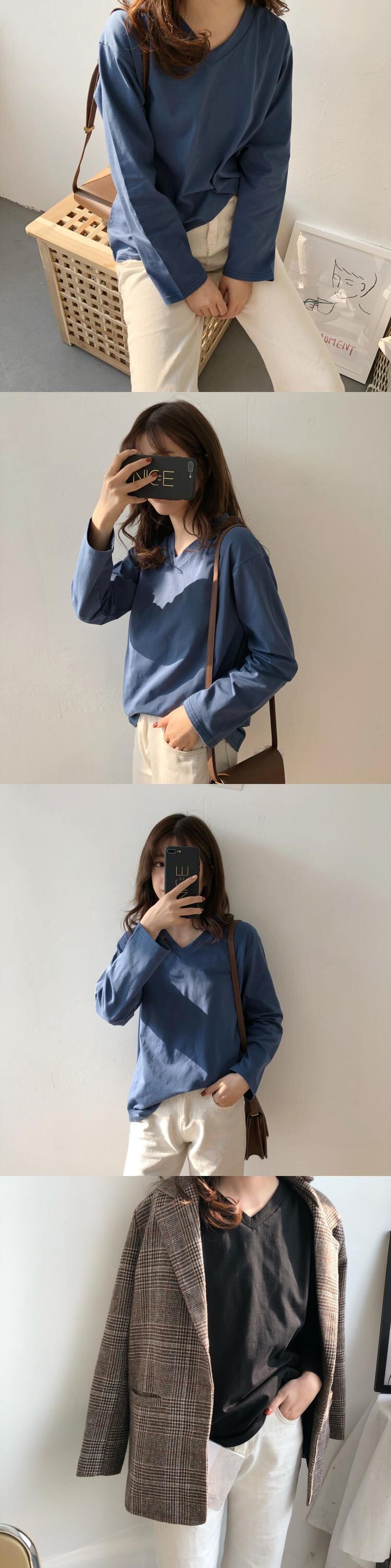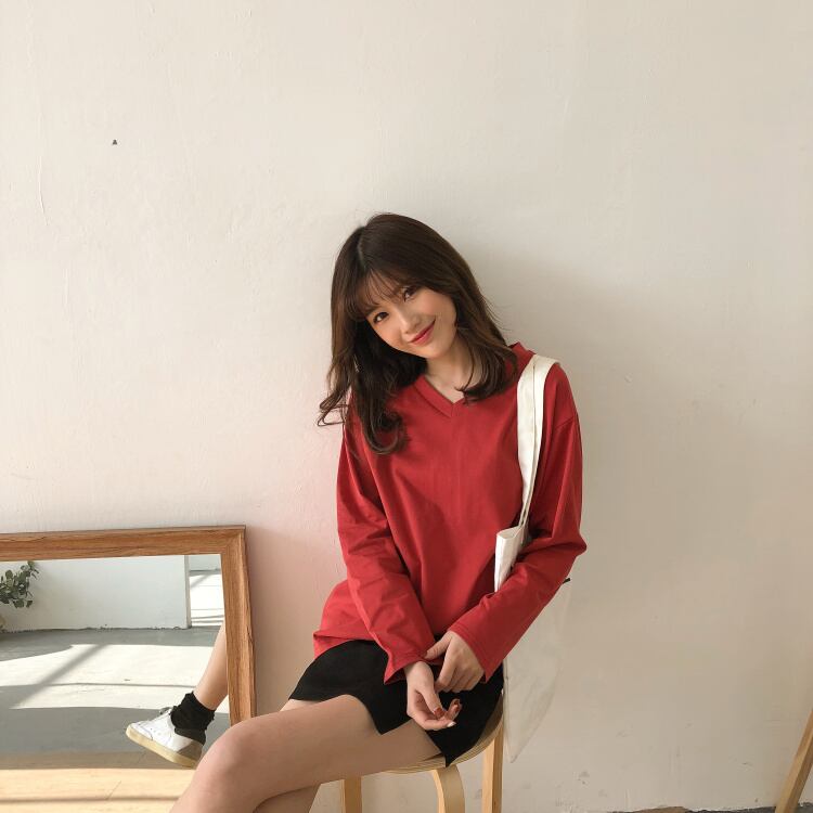 ベーシックVネックTシャツ シャツ スプリングカラールーズトップス ロング 春物 ピュア 韓国婦人14493795246