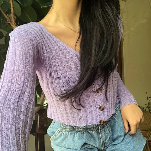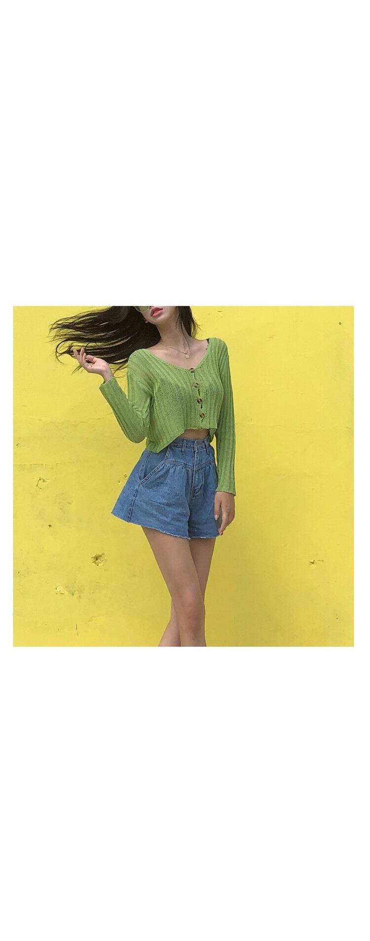 スプリングショートクロップドニットトップス 薄手コート シャツ レディース 春物 韓国婦人40234353965