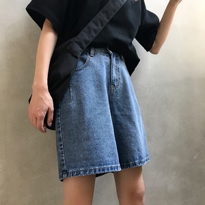 スプリングカジュアルルーズハイウェストウェストワイドレッグジーンズ ショーツ レディース 春物 ブルマー ワイドパンツ 韓国婦人94754957182