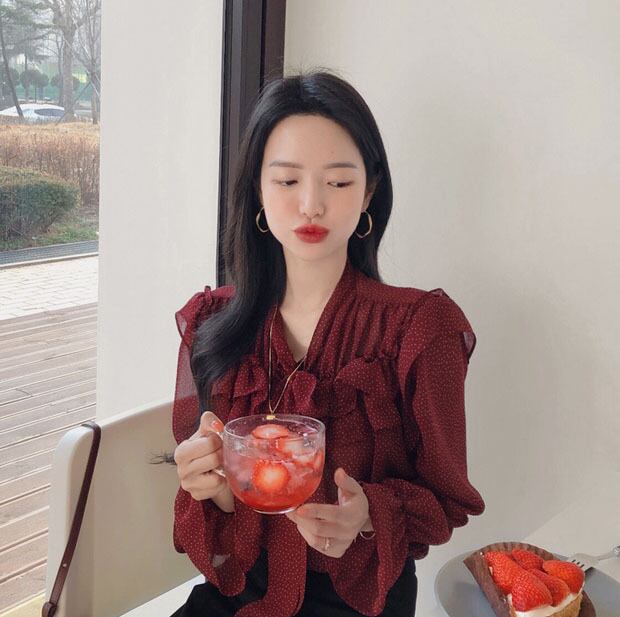 スプリングサマールーズスリーブシフォンシャツ 春物 夏物 韓国婦人45091701749