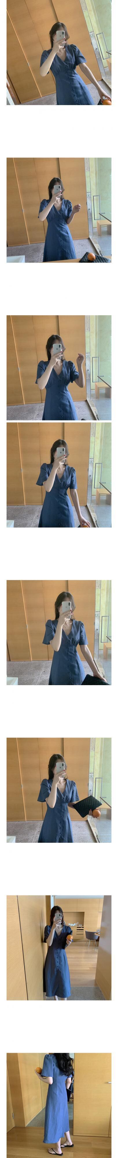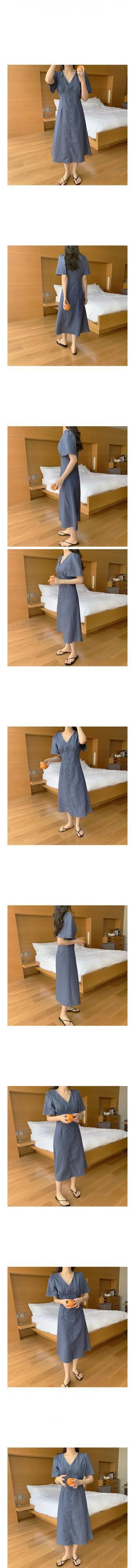 Vネックウェストスリーブドレス レッド エレガント 韓国婦人84310807544