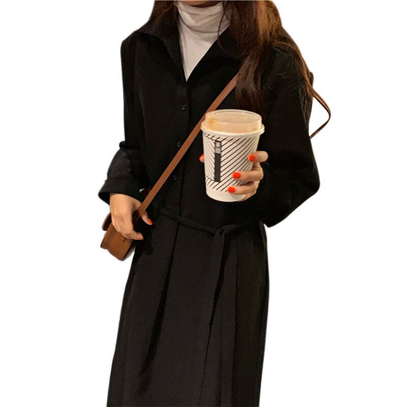 スプリングサマーブラックシフォンロングシャツ スカート ウェストドレス レース 春物 夏物 レースアップ 韓国婦人93287737955