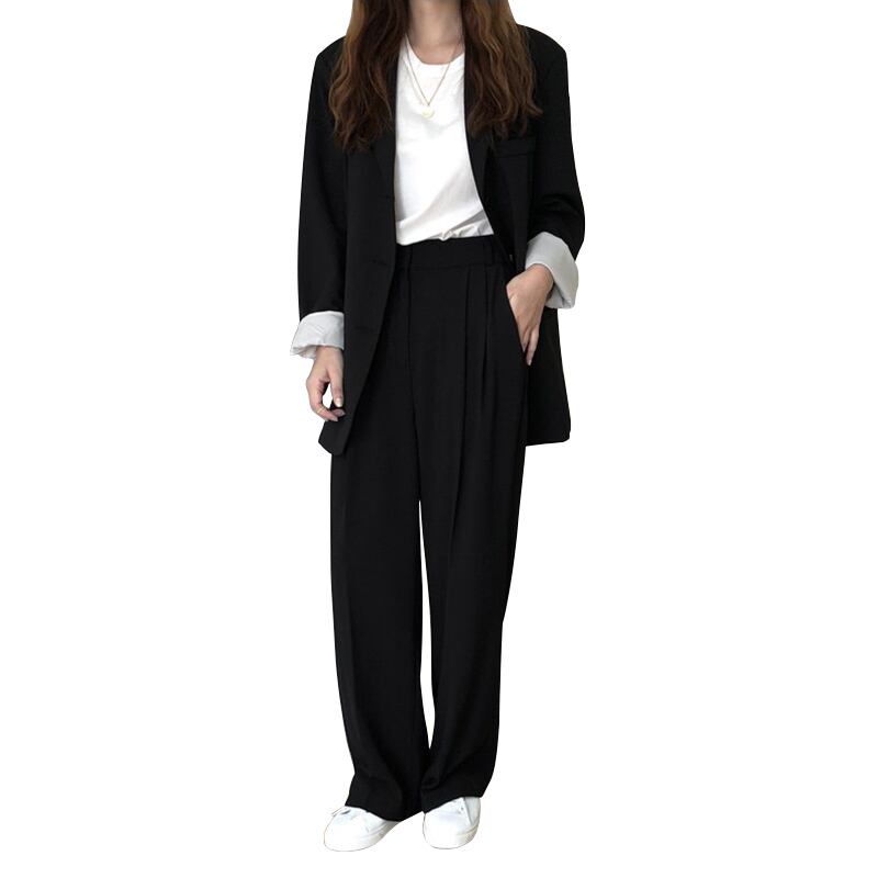 シックなカジュアルなレトロなラペル長袖スーツジャケット+ハイウエストドレープワイドレッグモップズボンズボンレディース 韓国婦人90855679177