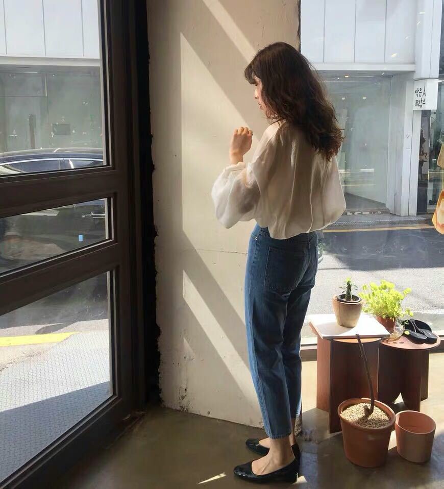 シックで優しくて用途の広いラウンドネックルース無地の柔らかくて薄いマイクロ透明な日焼け止めランタン長袖シャツトップ 韓国婦人66721469133
