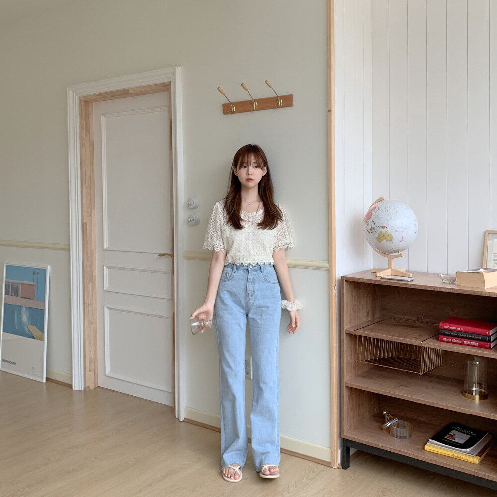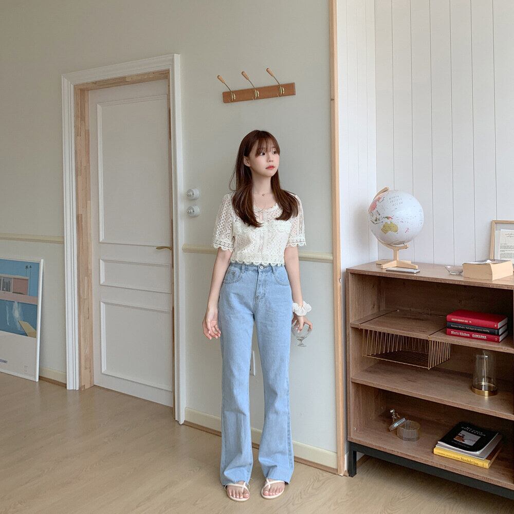 2020新しい夏のラウンドネック半袖レースシャツ、慎重なデザイン、超妖精気質のニッチな感覚、多目的なトップ 韓国婦人11092081222