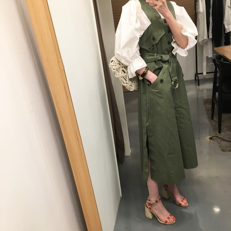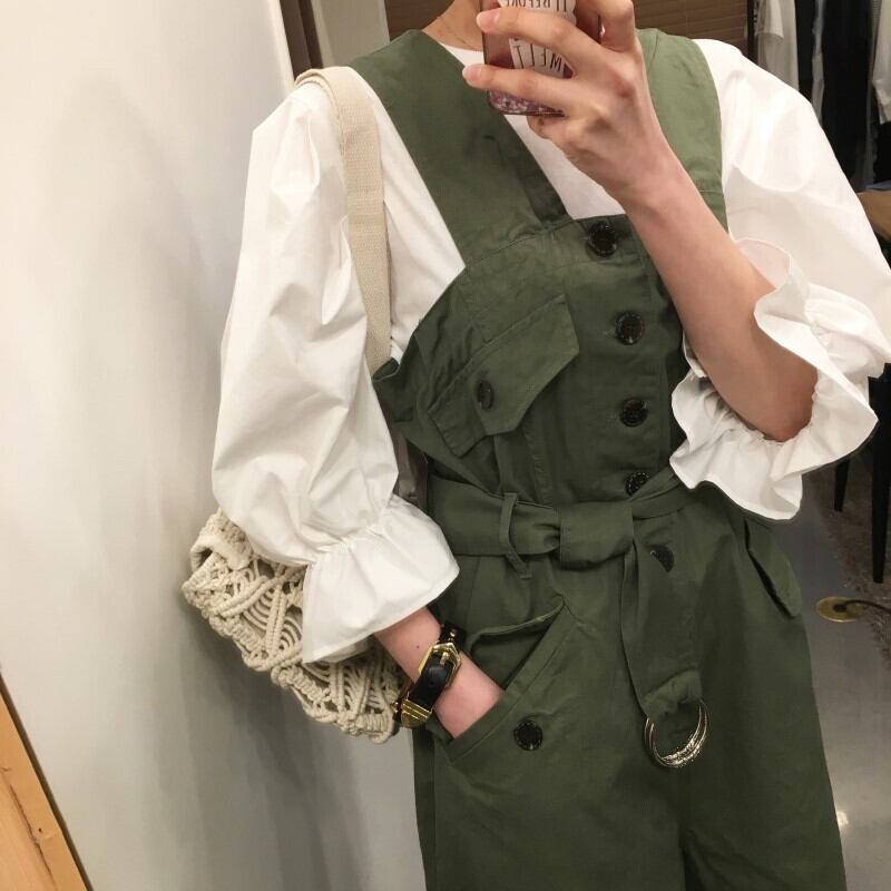 insレトロウエスタンスタイル、年齢減少、ドレープ、薄いオーバーオール、オーバーオール、オーバーオール+ランタンスリーブ、トップ 韓国婦人14047707467