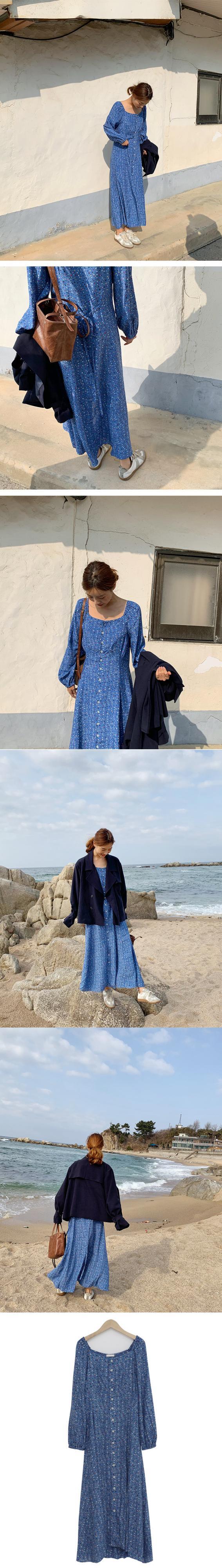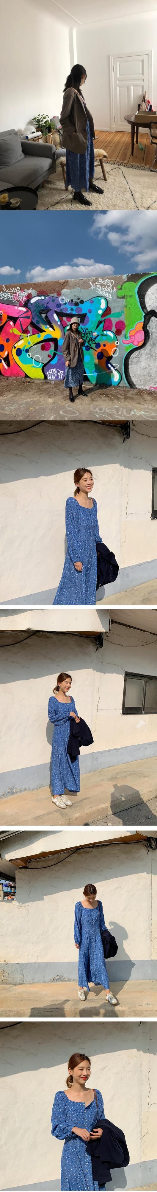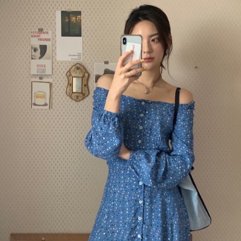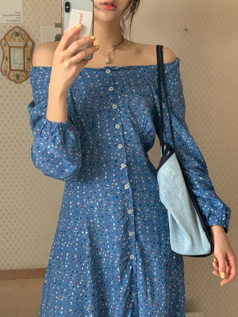 2020シックレトロフレンチ気質甘いウエスタンスタイル小花スクエアカラーウエストロングドレス 韓国婦人53749754570