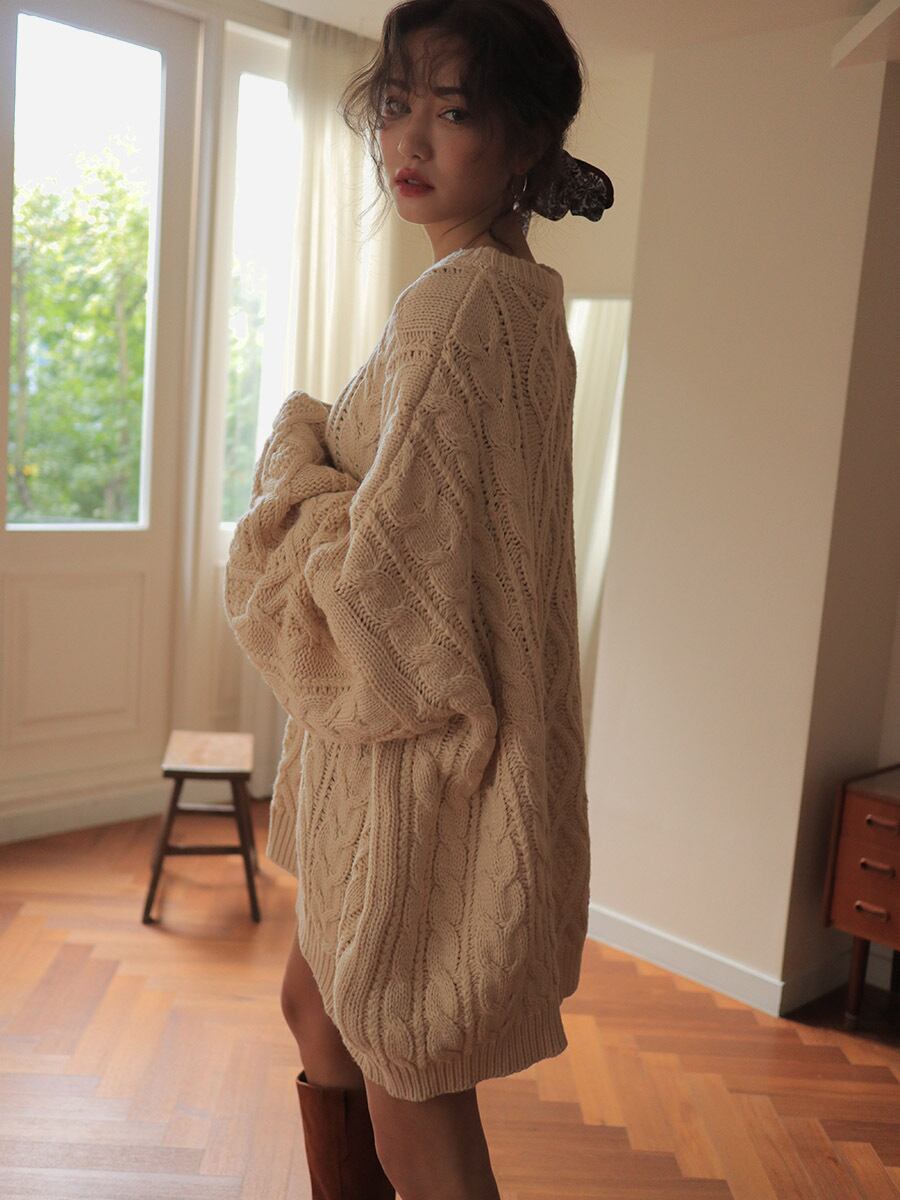 スタイル秋と冬の怠惰な風のセーターの女性のミドル丈の緩いスタイルのカレッジスタイルの学生はニットのセータースカートを着用します 韓国婦人47303781761