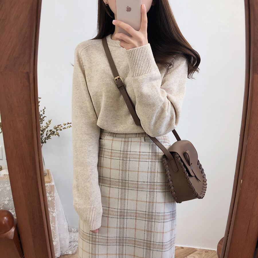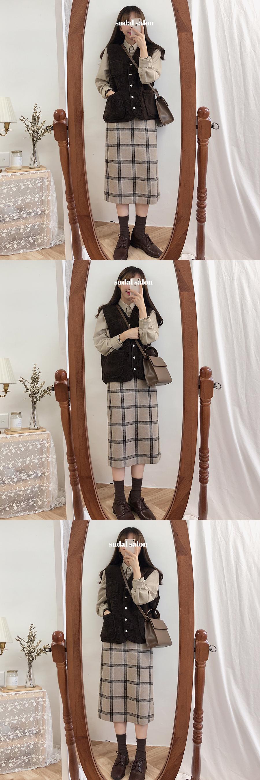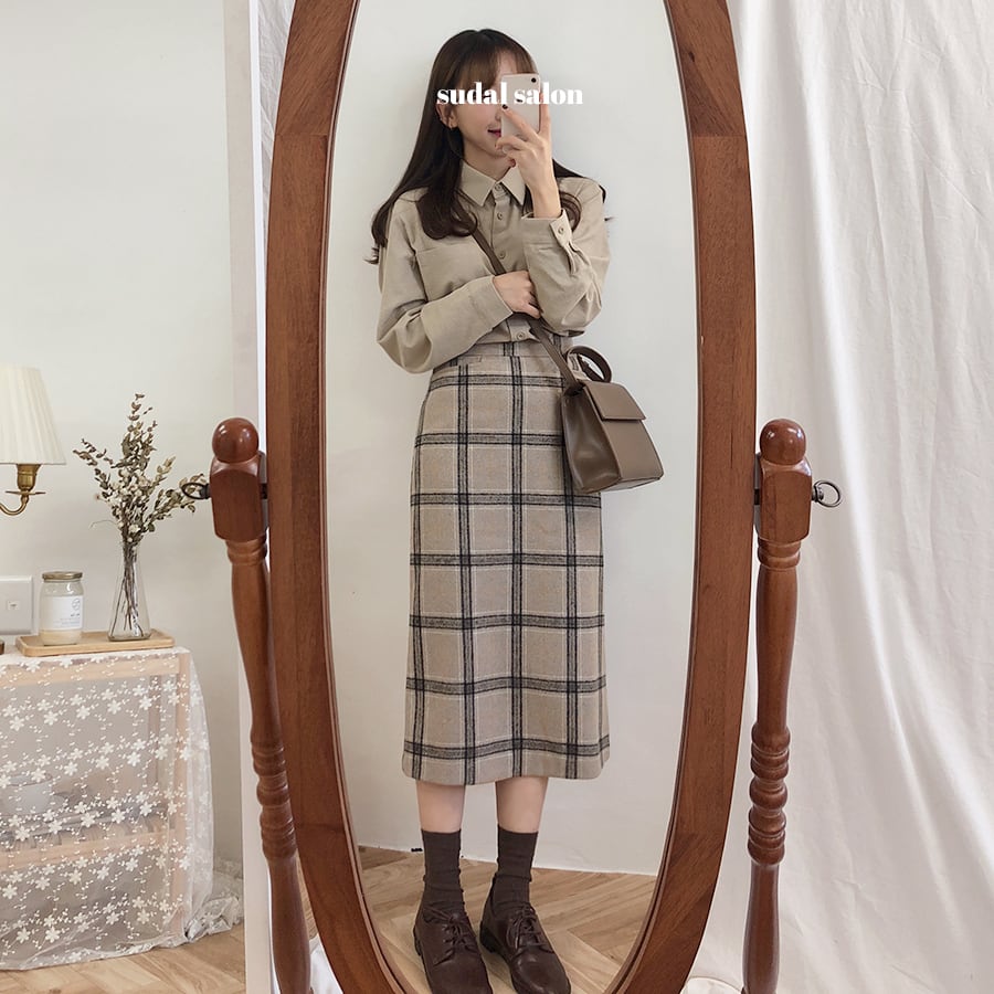 スカート秋/冬フレンチレトロAラインスカートミドル丈ウールミルクティーチェックスカートワンステップスカートバッグヒップスカート 韓国婦人15289798856