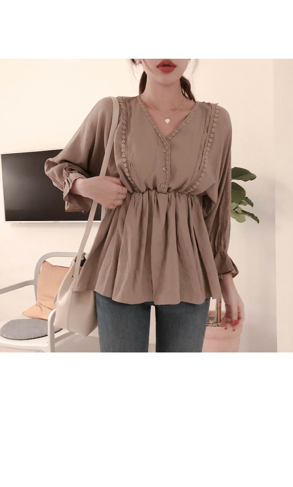 シックなシャツの女性のデザインセンスのニッチなレトロな香港の味覚の緩いバージョンの腰の薄いVネックブラウス 韓国婦人75920271532