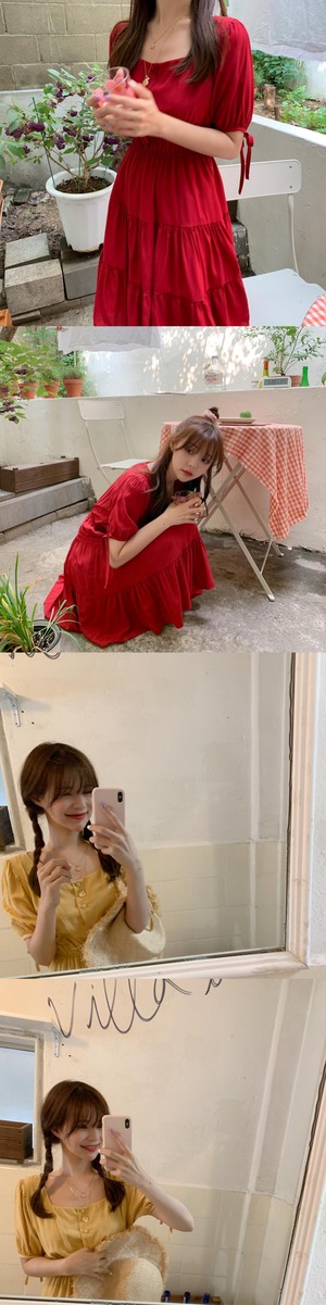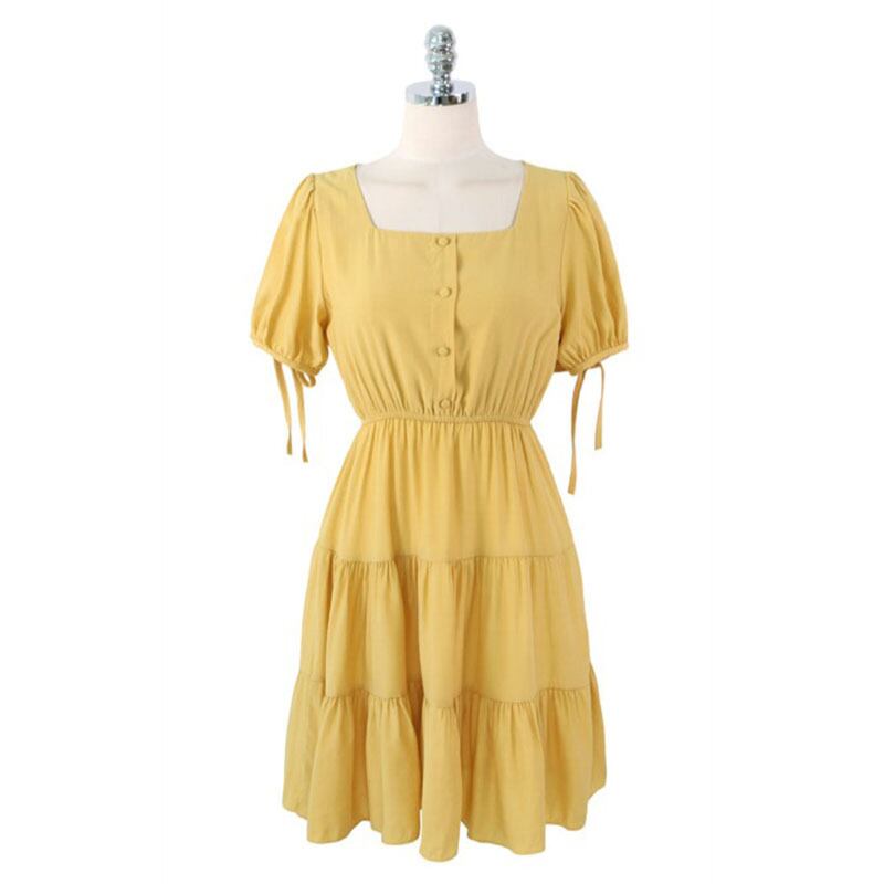 スカート スタンダードウェストカラードレス サマー レトロ 夏物 スクウェア 韓国婦人28226808607