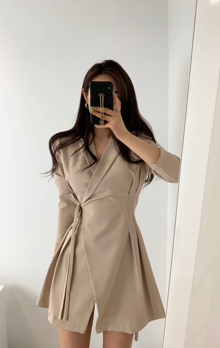 シックなニッチなレトロなスーツの襟ハイウエストプリーツワンピースレース薄いAラインドレススカート 韓国婦人36821269575