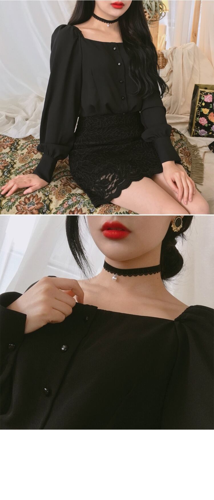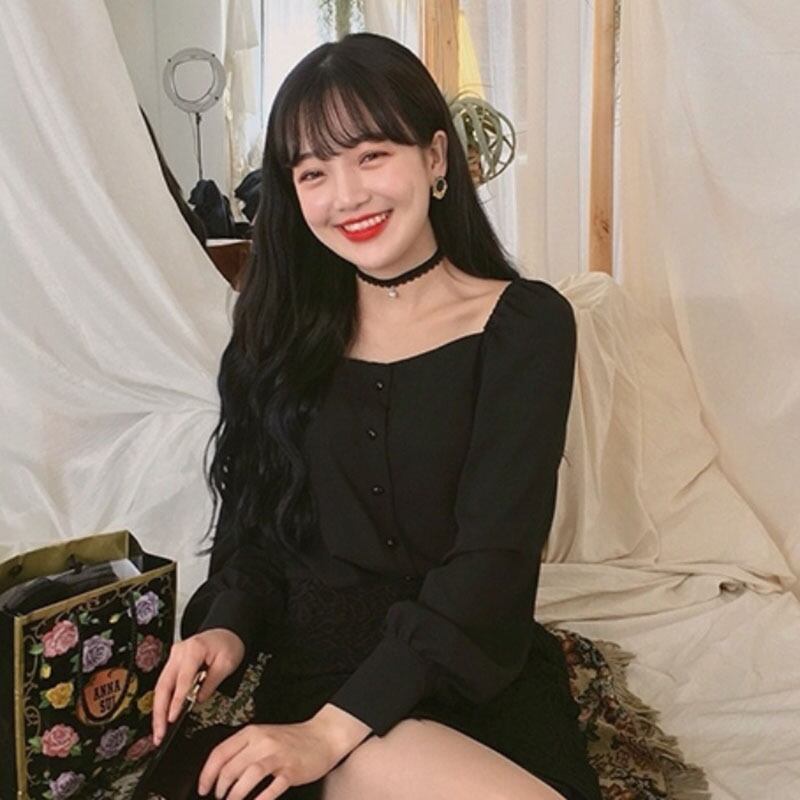 ゴーストホースシックトップ2020春の新しい穏やかなレトロな緩いスリムシャツ女性長袖正方形の襟 韓国婦人74613802302
