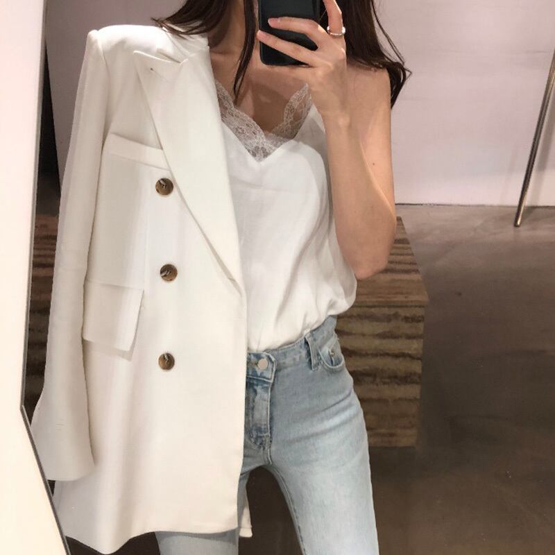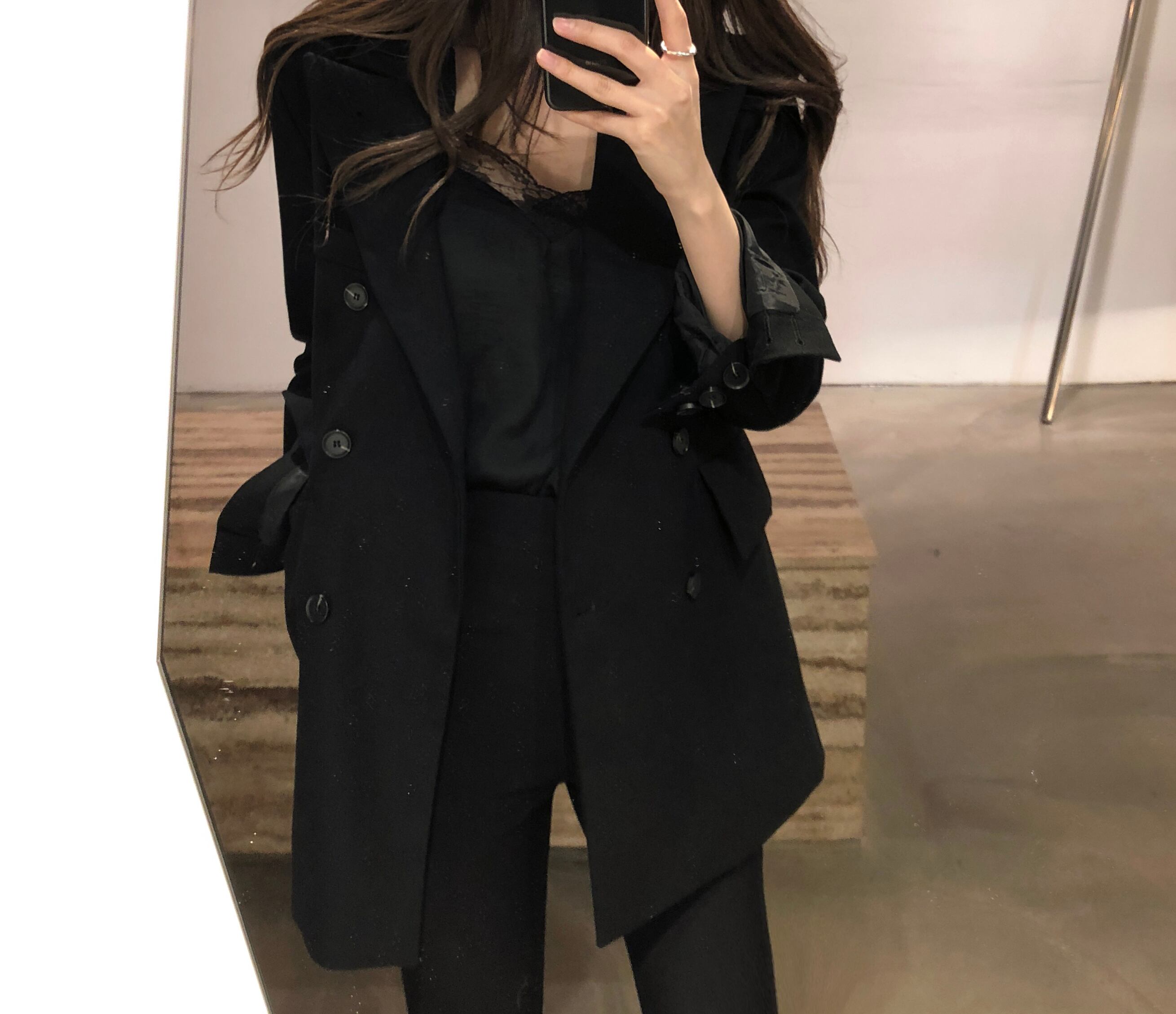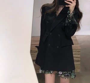 シックな春先にエレガントなワイルドラペルダブルブレストスリムウエストスリミングダブルポケット小さなスーツジャケット女性 韓国婦人18607785857