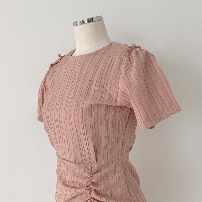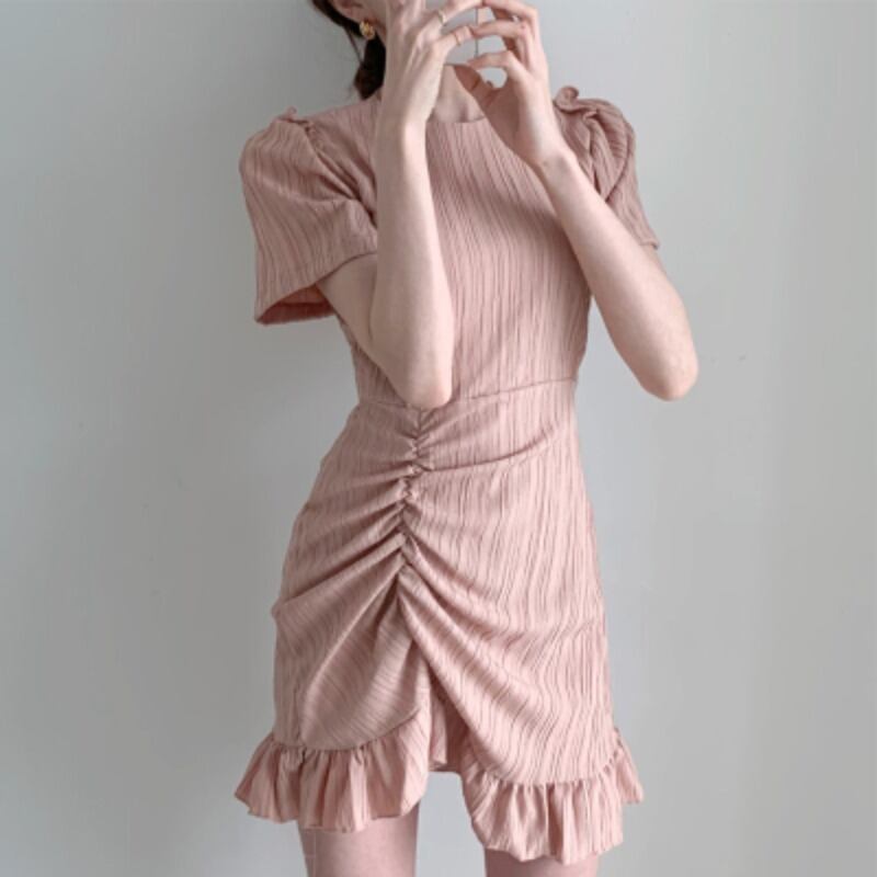 2020年春夏バージョンのコットンとリネンのマイクロエラスティックハイウエストスリムスリミングプリーツイレギュラーフリル半袖ドレス女性 韓国婦人80162177951