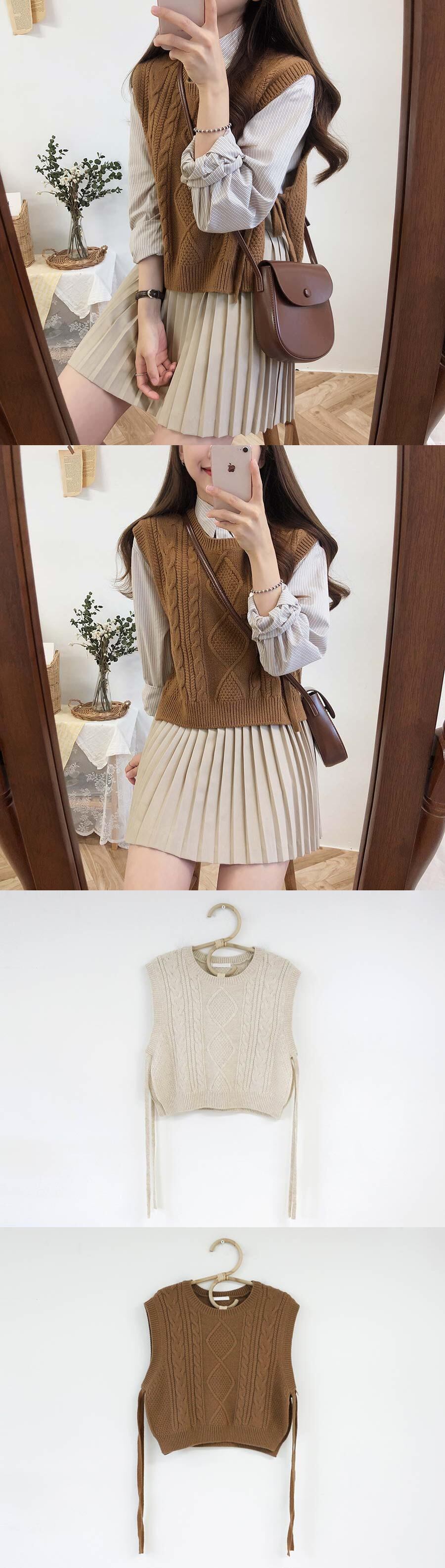 新しいラウンドネックレトロツイストレースアップスプリットプルオーバーベスト女性ニットショートベスト学生の2019秋バージョン 韓国婦人9349632443