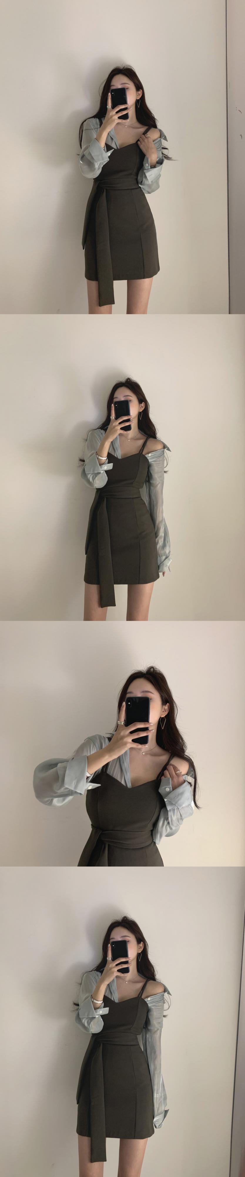 2020年初春シックなオールマッチシースルー薄手のシャツ+ウエストスリングドレス気質女神ツーピーススーツ 韓国婦人89646506133