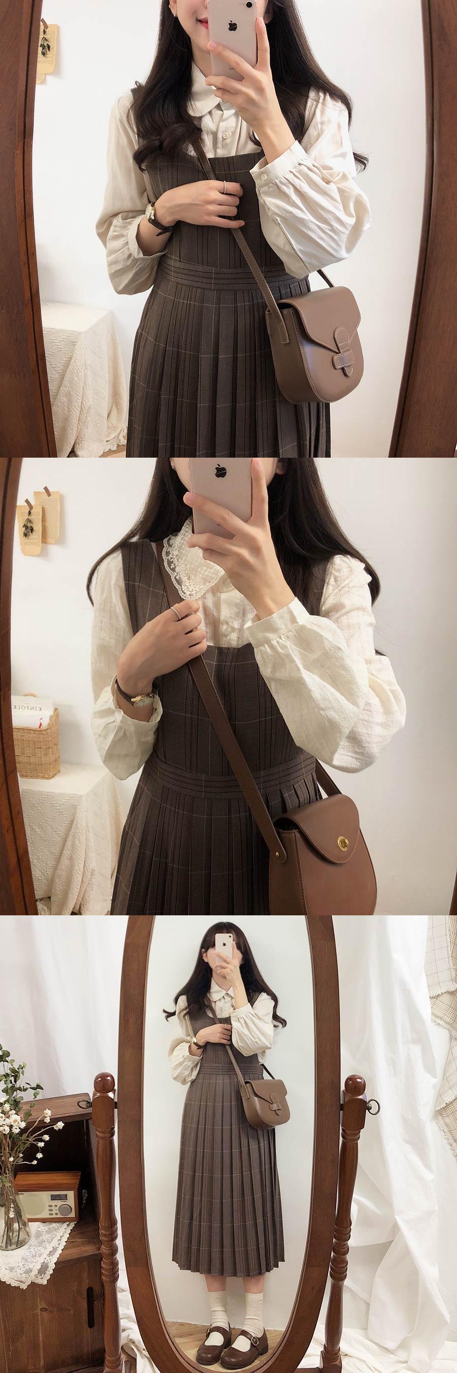 2019秋冬の新しいフレンチニッチスリムミドル丈サスペンダースカートフォールドインスーパードレス女性 韓国婦人94689909011