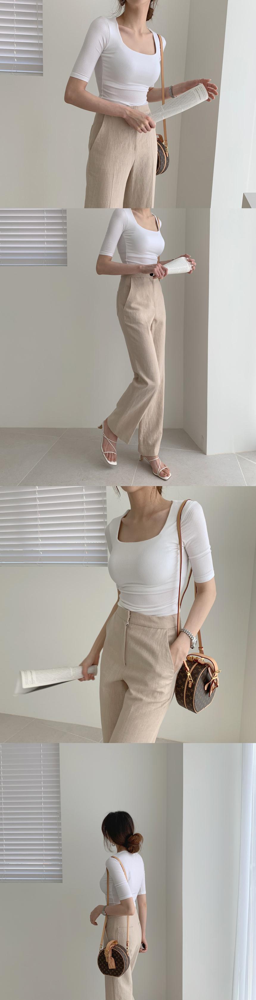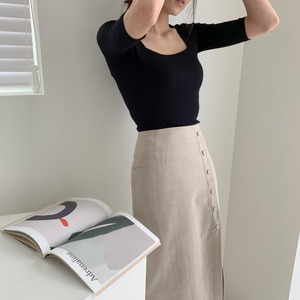 2020年春夏気質オールマッチスクエアカラー露出鎖骨半袖スキニースリムコットンTシャツレディーストップ 韓国婦人18014962930