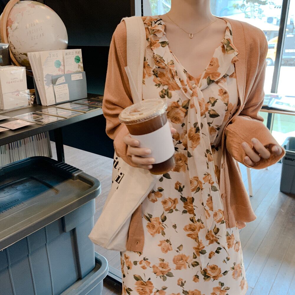 小さなフレッシュフローラルドレスレディースミッドレングス2020秋冬新作スウィートビューティードレス長袖ウエストスリムスカート 韓国婦人41701304316