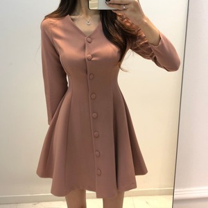 シックでエレガントなライト成熟したVネックシングルブレストプリーツウエストスリムスリムスリムドレスショートスカート女性 韓国婦人6589195307
