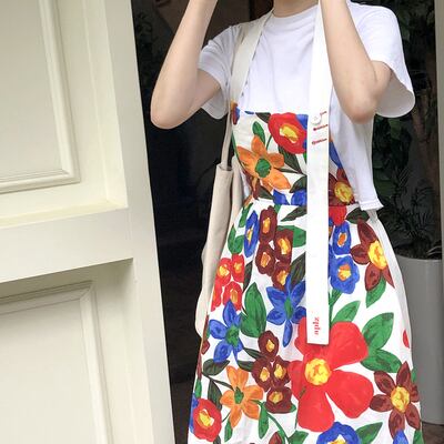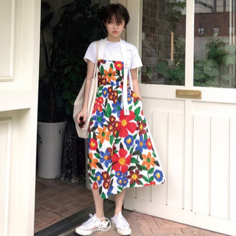 キム・ヒョナ風ゴーストホースインバージョンダウンエイジビッグフラワーストラップワンピース+オールマッチ無地半袖Tシャツセット 韓国婦人21972400406