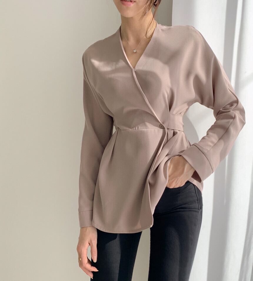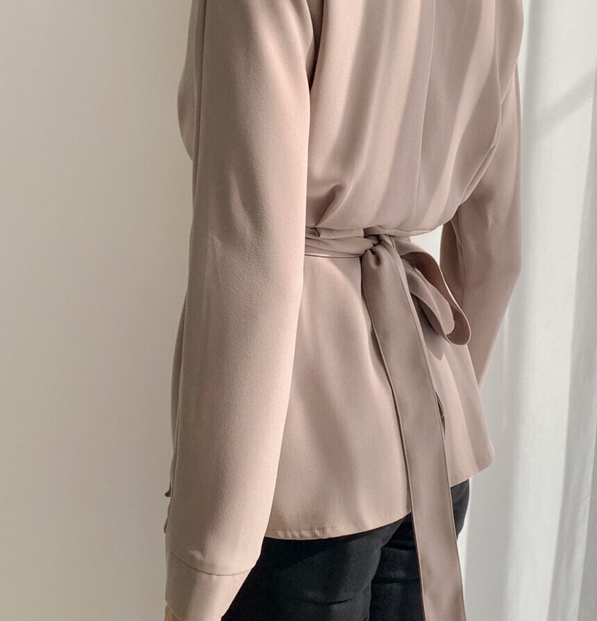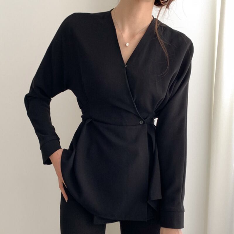 センスニッチVネック長袖黒シャツ2020新しい女性春レトロ香港スタイルウエストウエストスリムトップ 韓国婦人31026090432