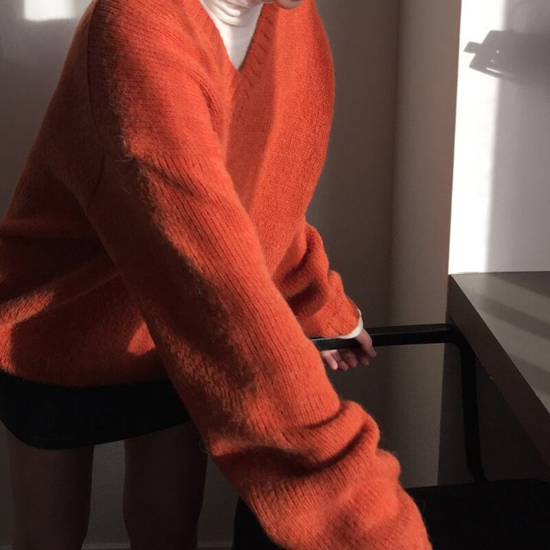 2019秋ニューインワイルドシンプルヘッジVネックルーズレイジーニットセーター長袖セーター女性 韓国婦人26241429355