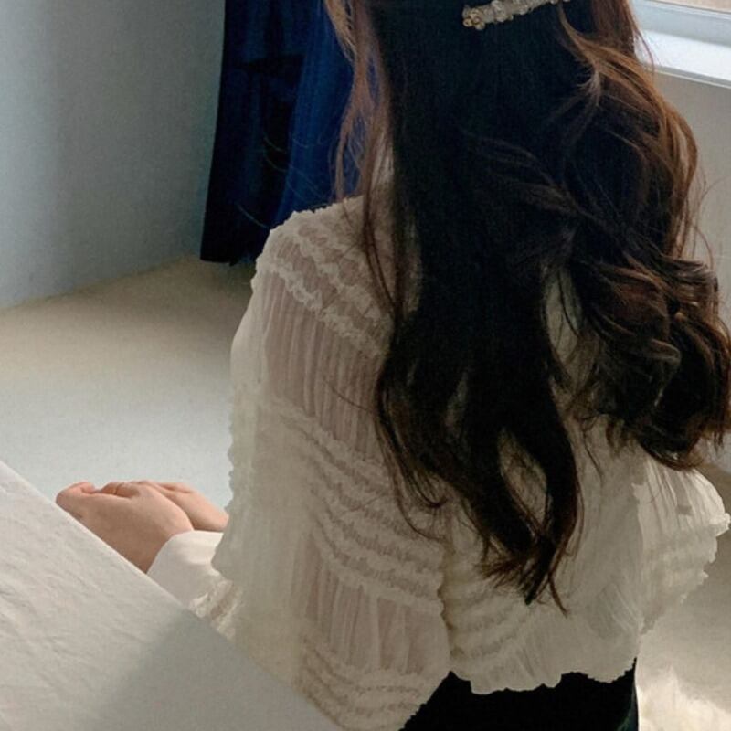 シックな春の甘くて優しい重工業は立体的なキクラゲのゆるいランタンスリーブシャツシャツの女性を折ります 韓国婦人44591709990