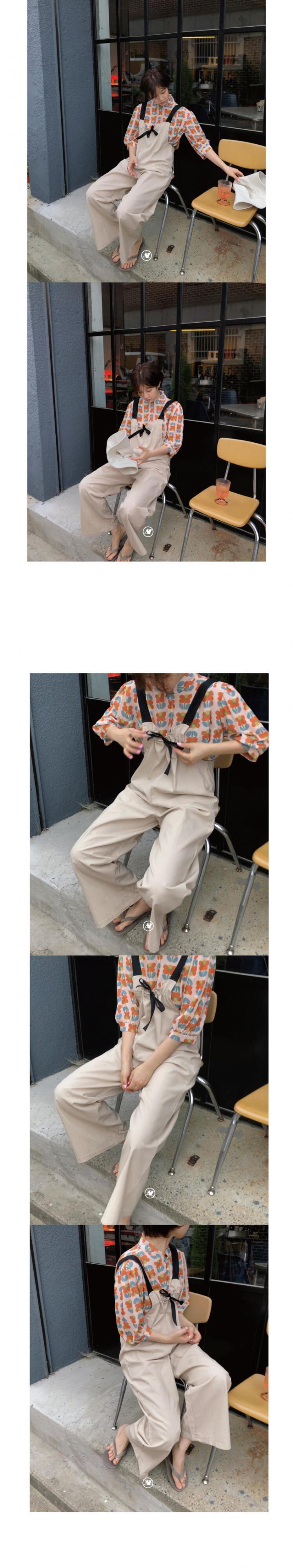 シックな年齢を減らす遊び心のあるスタンドカラーフラワー半袖シャツ+ルーズドローストリングハイウエストカジュアルワイドレッグオーバーオール 韓国婦人97628610592