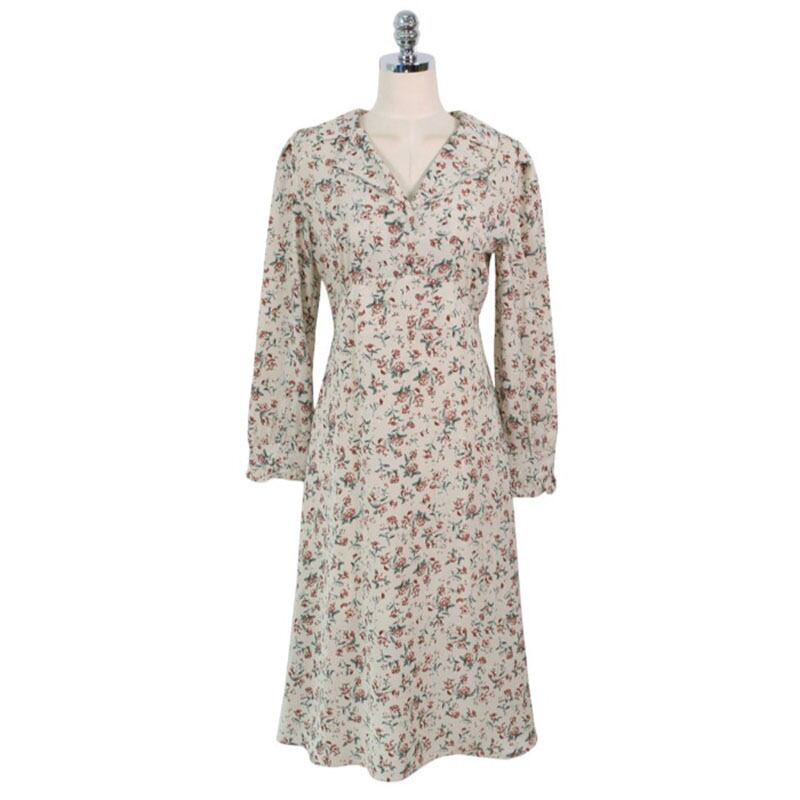 2019春秋フレンチレトロニッチデザインスーツ襟ウエストスリミングシフォンフローラルドレスミドル丈女性 韓国婦人83383684501