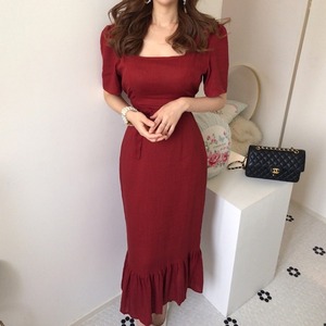 レトロなスクエアカラー2020夏の新しい女性の気質の綿とリネンのフリルフィッシュテールスカートスリムスリムウエストドレス 韓国婦人81891245436