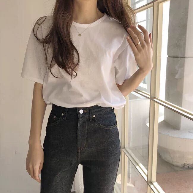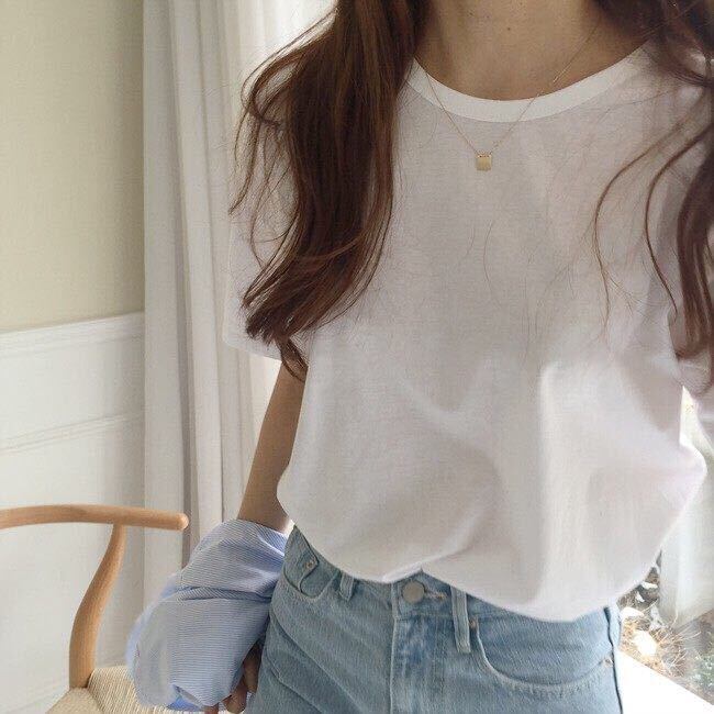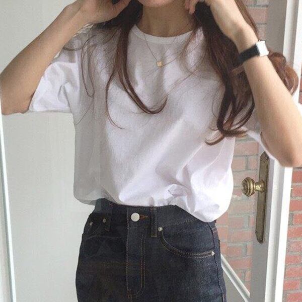 シックでシンプルなベーシックモデルカジュアルワイルドラウンドネックプルオーバー無地ルーズ半袖ボトミングシャツTシャツ女性夏 韓国婦人68962206361