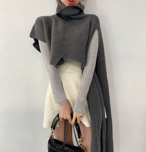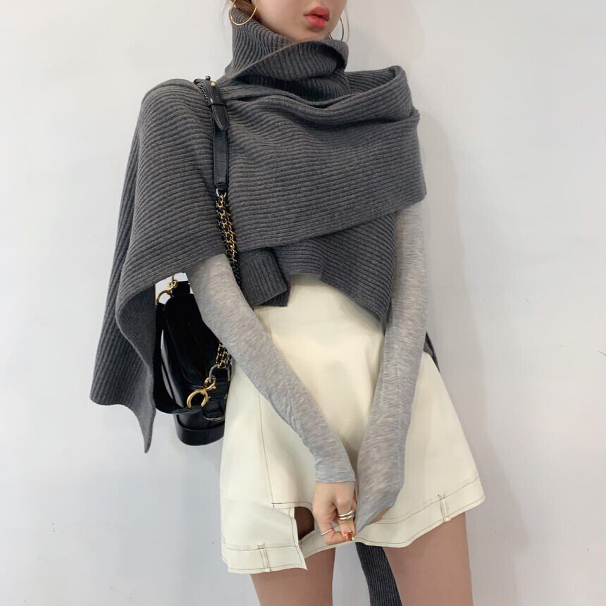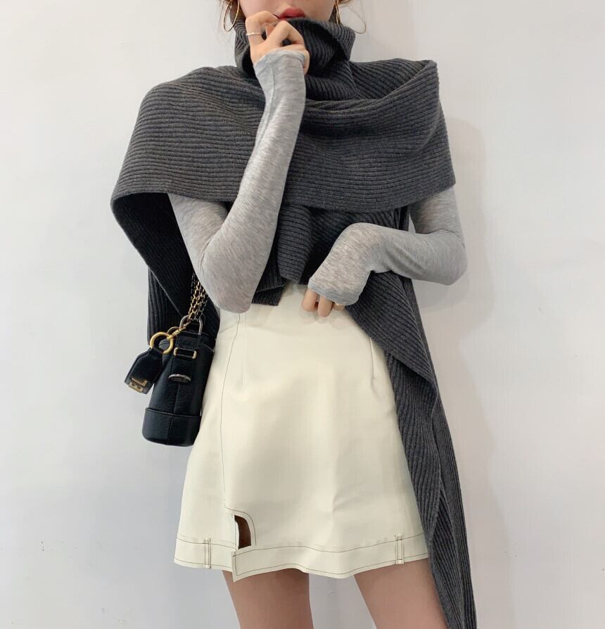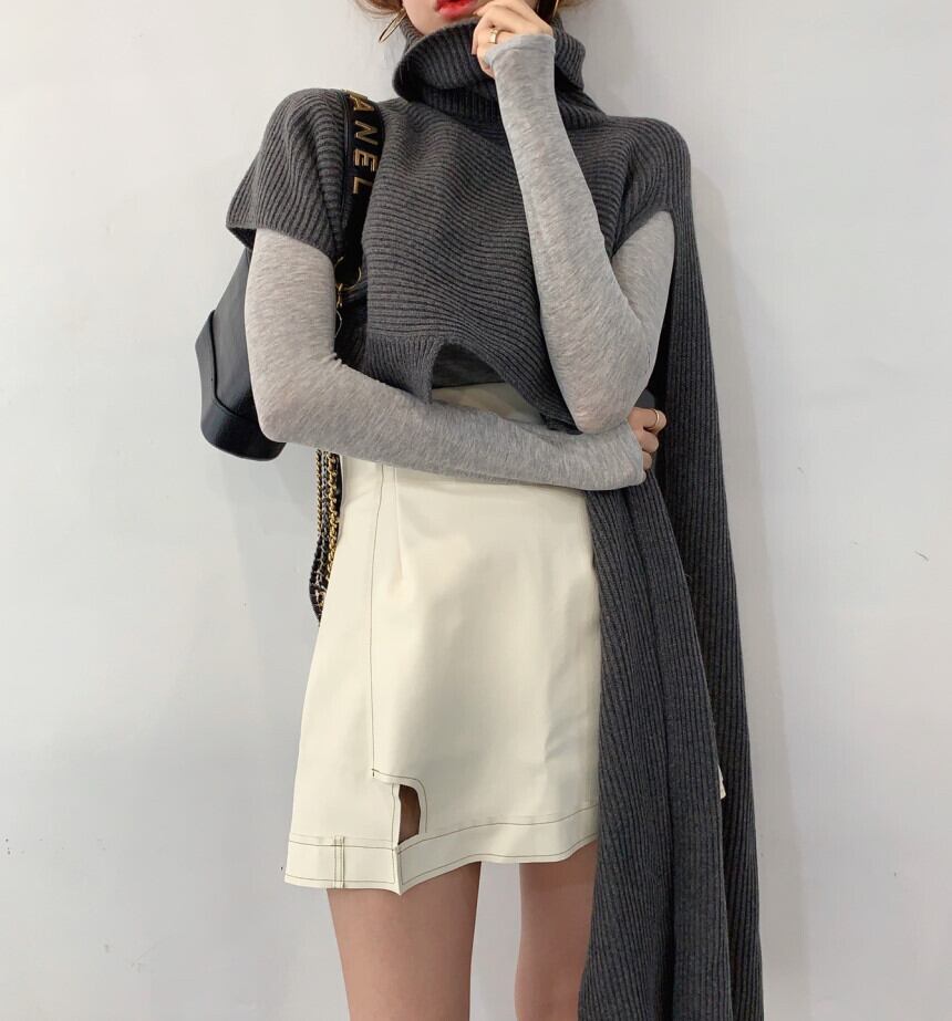 シックなワイルドハーフハイネックスカーフプルオーバーセーター+レトロハイウエストスカート 韓国婦人93091835881