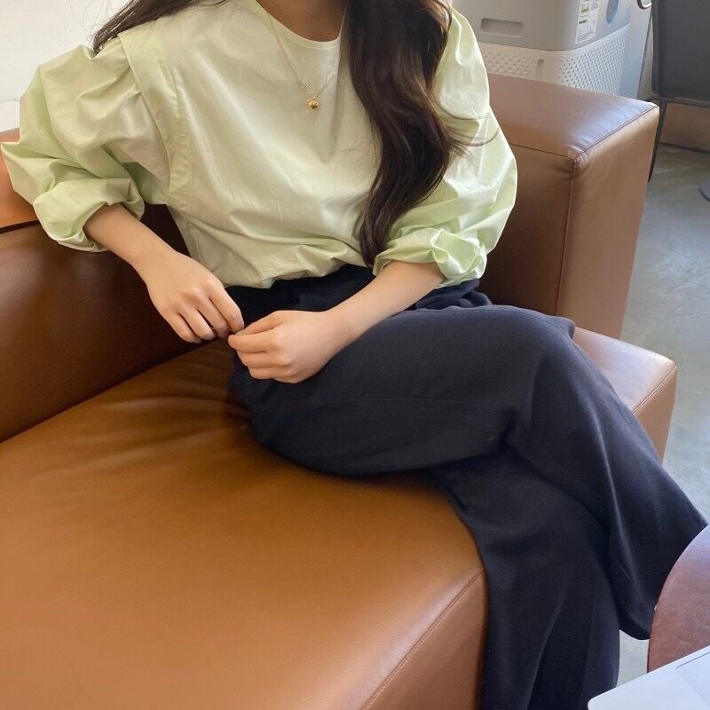 2020年春新作フレンチ優しい気質ルーズラウンドネックプルオーバー長袖シャツ女性デザインセンスニッチ 韓国婦人7972669137