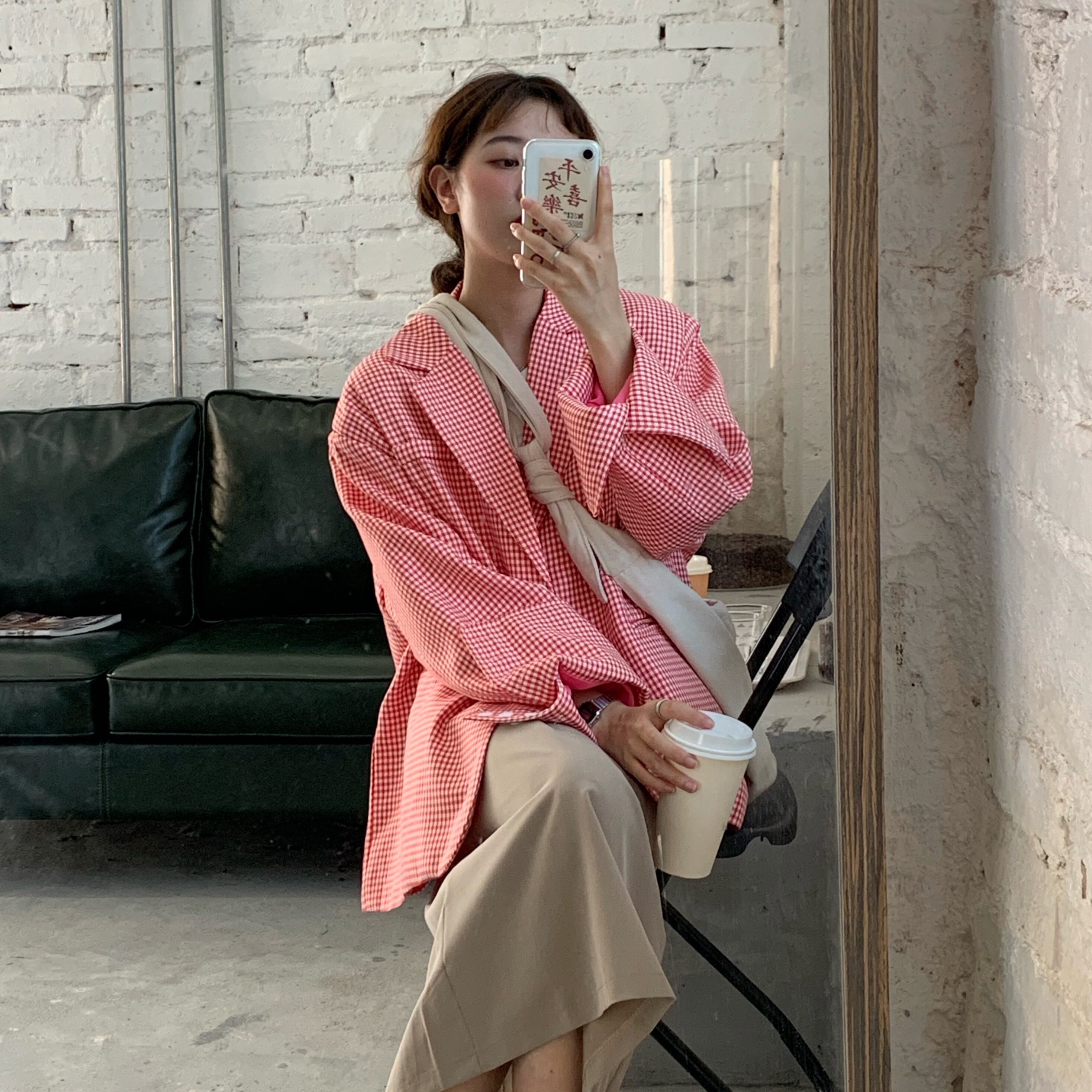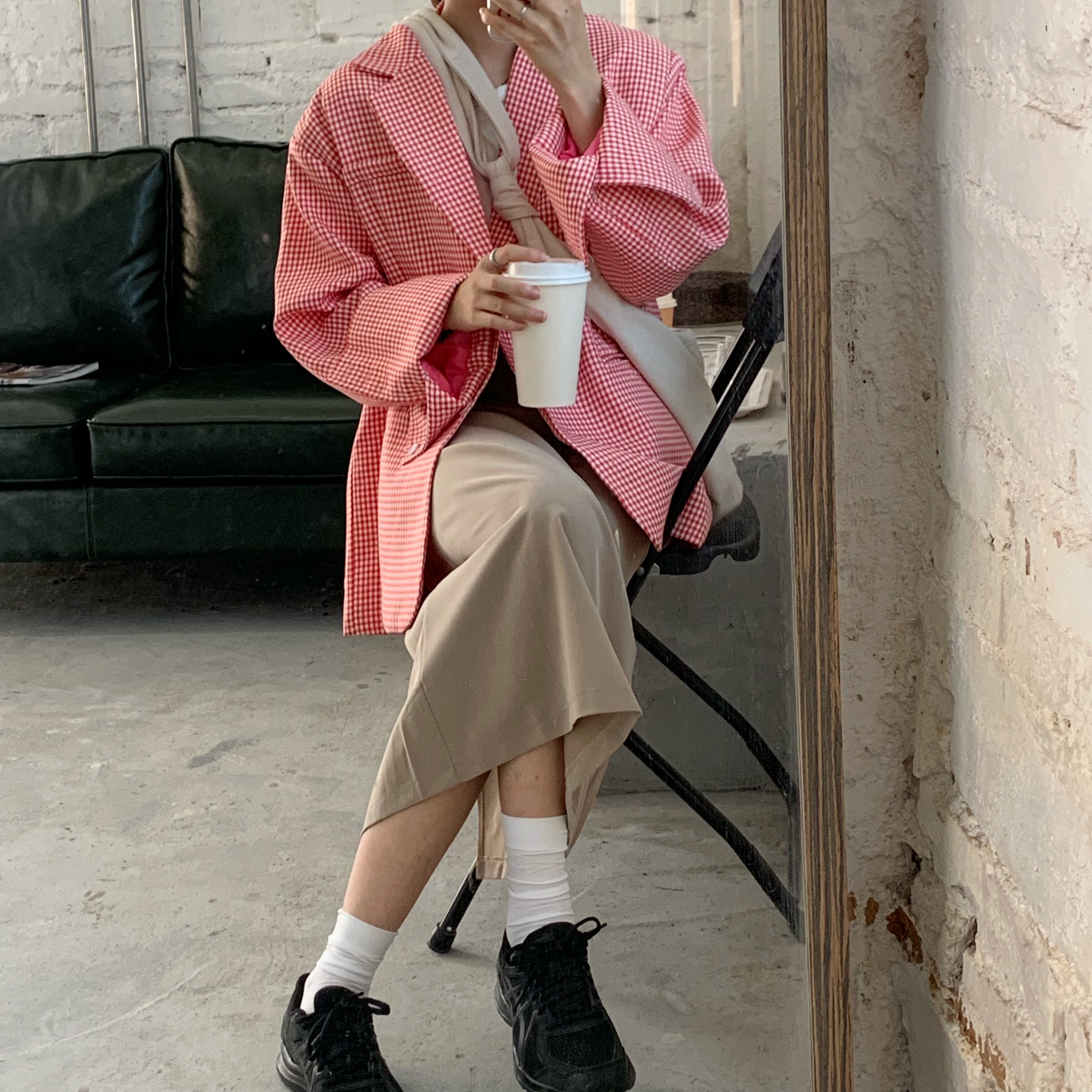 ゴーストホース秋シックルーズオーバーサイズチェック柄スーツジャケット+スーツスカートスーツ 韓国婦人77503485630