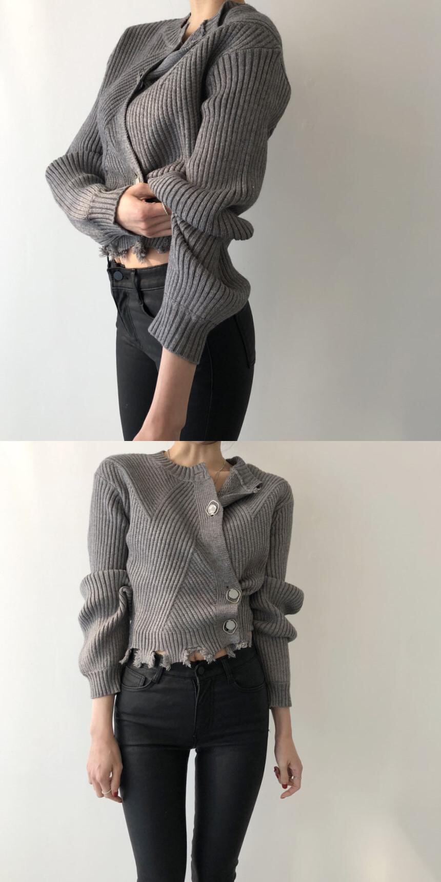 シックな個性ワイルドなラウンドネックシックなボタン不規則なギザギザのデザインセンス長袖ニットカーディガンセーター 韓国婦人34396018637