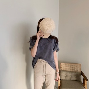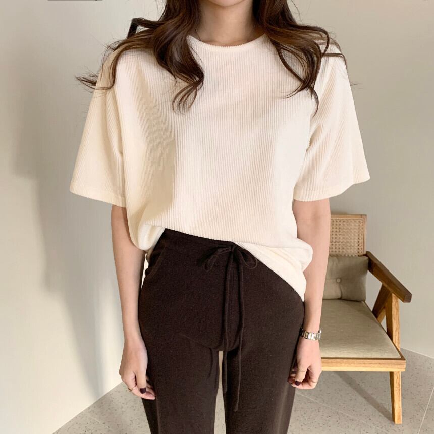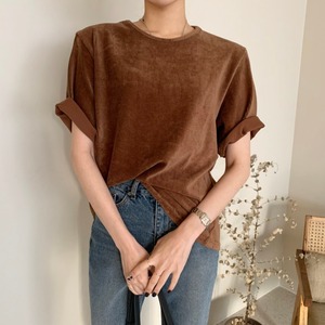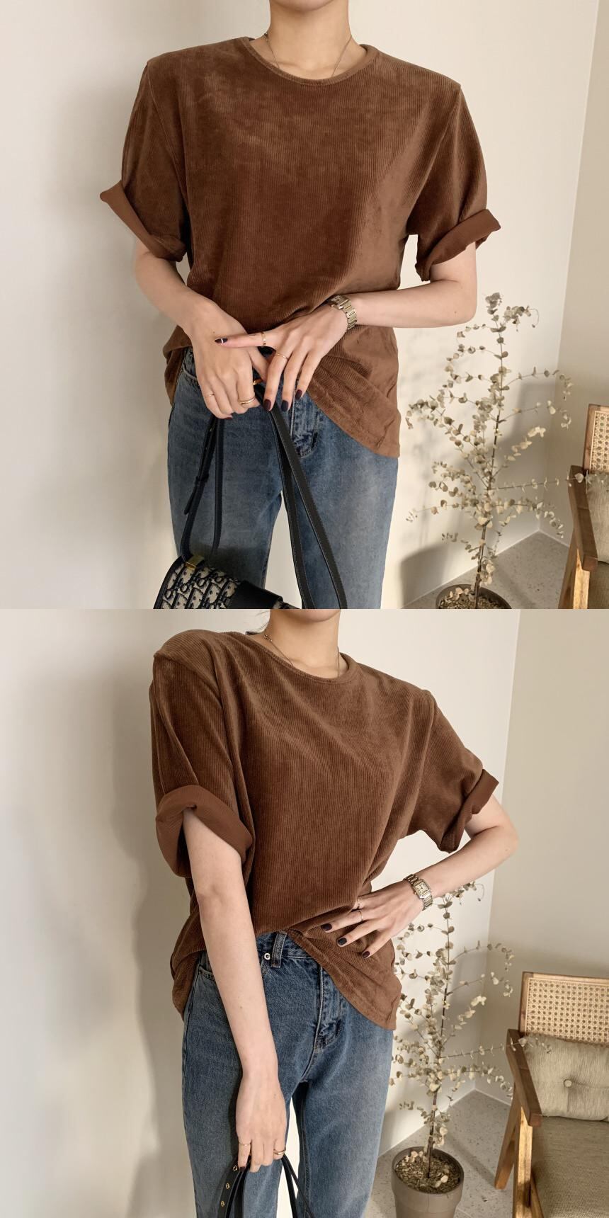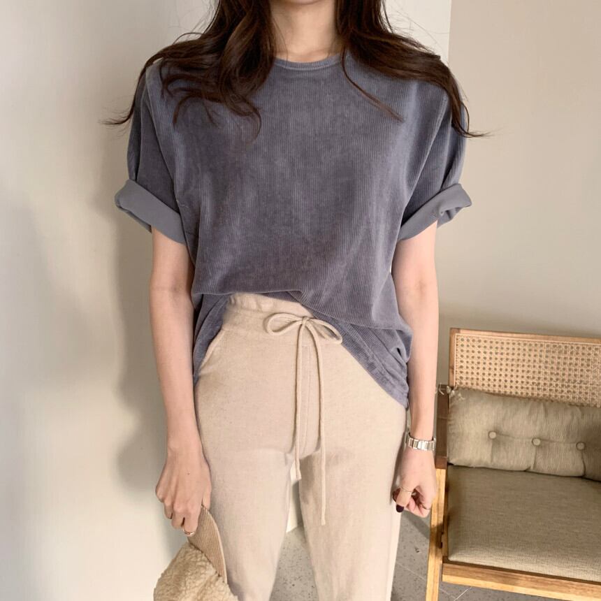 2020年東大門春新コーデュロイシンプルバージョンのワイルドルーズ半袖Tシャツ女性 韓国婦人24395490382