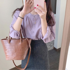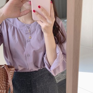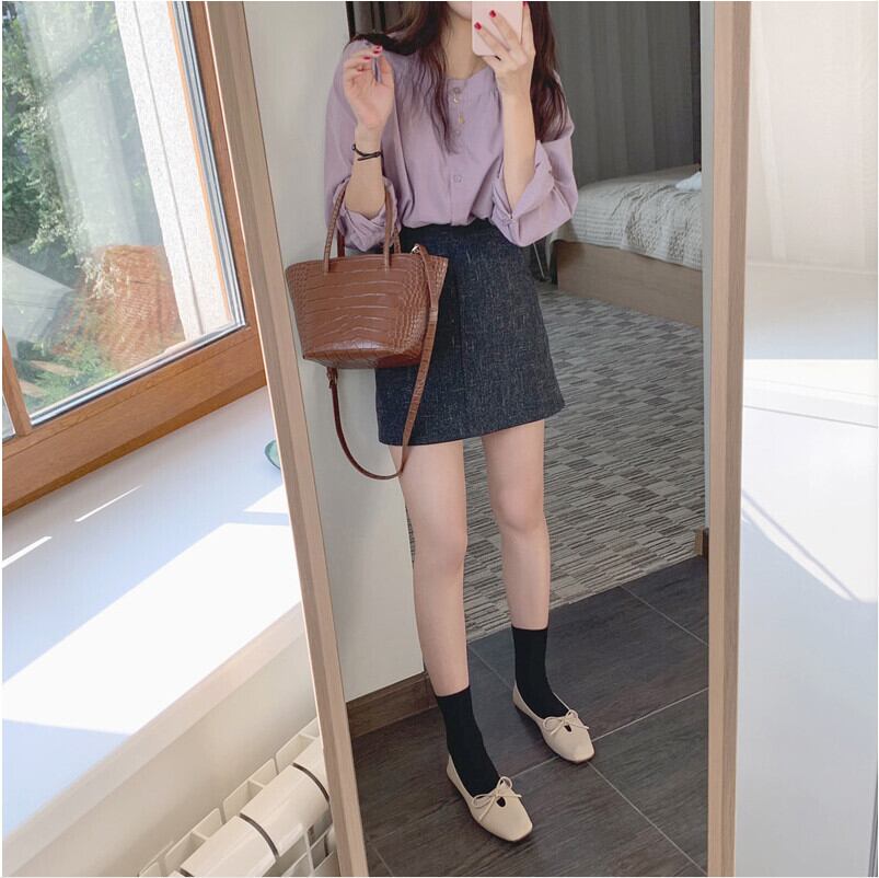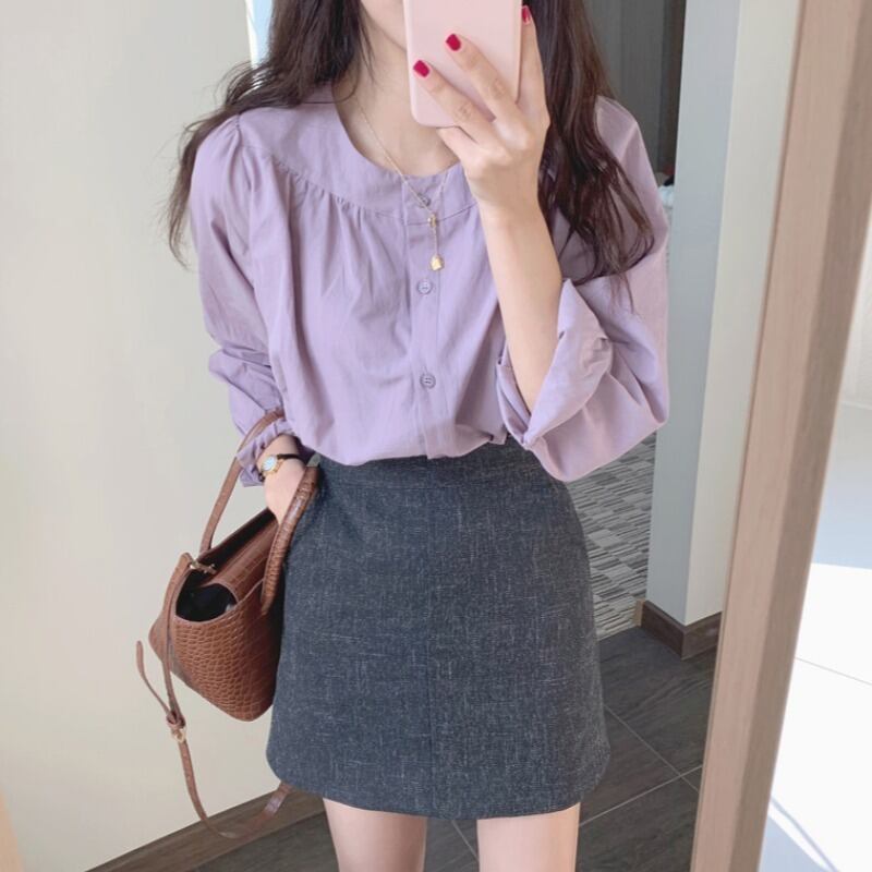 ジェントルスタイルシックロマンティックレトロシンプルベーシックラウンドネックシングルブレストベビーシャツトップス+スカート 韓国婦人97331963353